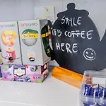 Koupelna má samostatnou toaletu, vanu a sprchu, zatímco pokoj má šatnu, pohovku, přístroj na přípravu kávy a čaje.